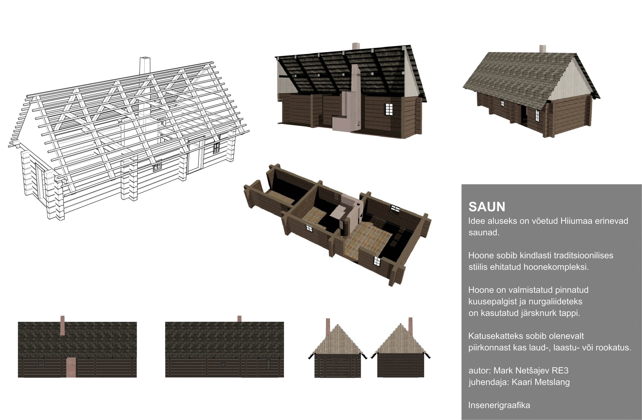Tutvustame rahvusliku ehituse eriala tegemisi sauna näitel, mis on ühelt poolt eestlaste ehituspärandis olulisel kohal paiknev hoonetüüp, teisalt meie eluviisi lahutamatu osa. Saunaga on ajalooliselt seotud mitmeid tähendusi ja traditsioone, millele ehk tänapäeval nii väga ei mõelda, kuid mida me eneses ometi edasi kanname. Täpsemalt…