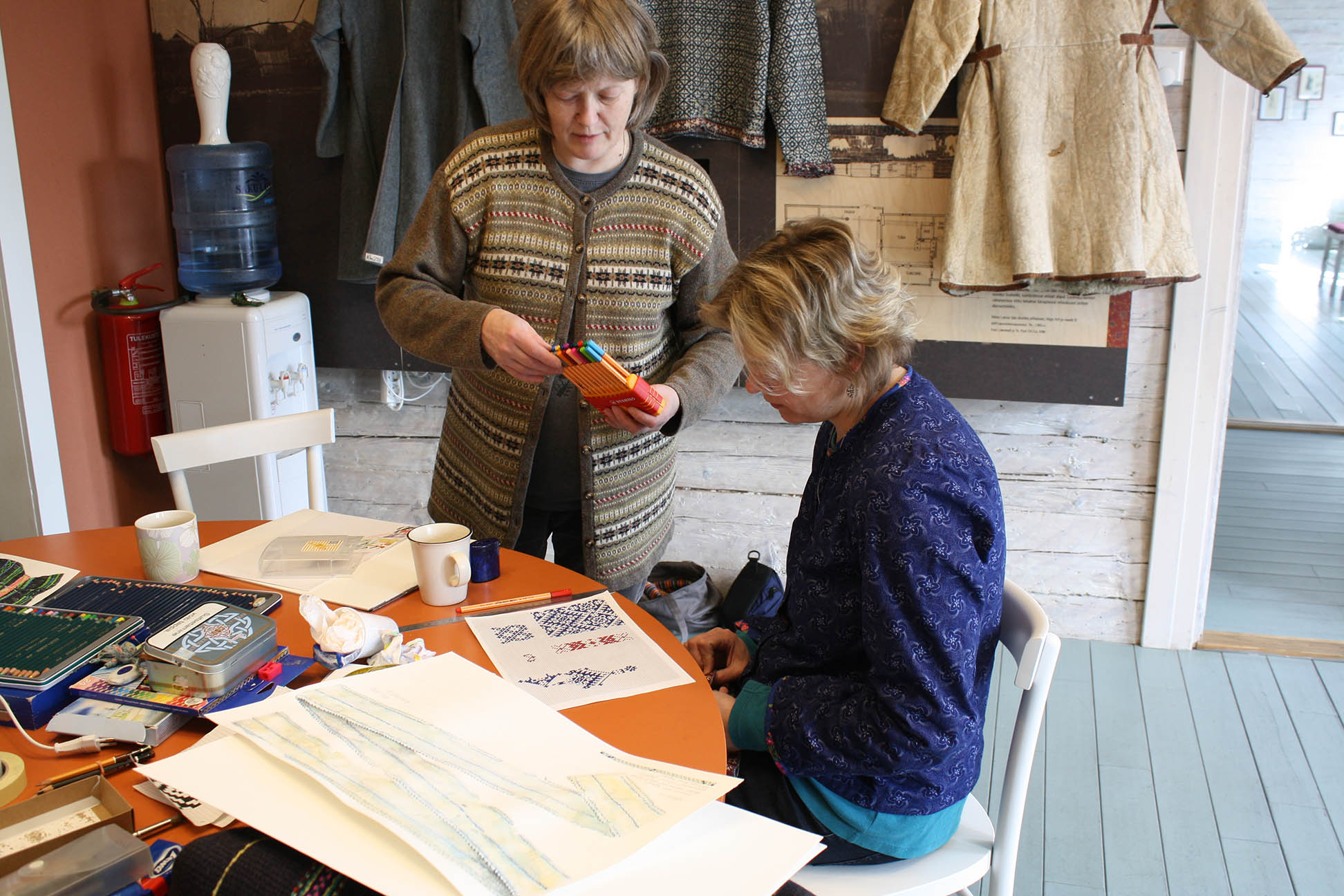 Käesoleval stendil on tänavuaastase Kihnu saarel toimunud pärimuspraktika saadused: üliõpilaste maalitud koopiajoonised ning Mari Puki tehtud meeleolukad fotod kohapealsest eluolust. Jooniste läbi saavad üliõpilased praktiseerida joonistamise ja maalimise aines omandatud oskusi ning arendada tekstiilide detailset vaatlusoskust. Millest ja kuidas on need tehtud ning üritada tulemusi arusaadavalt dokumenteerida.